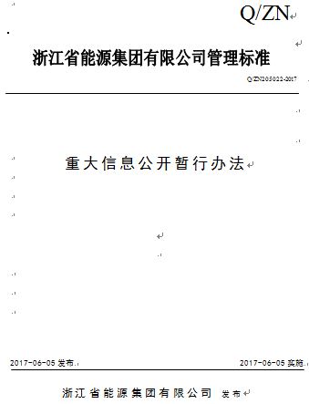 6.1集團(tuán)公司重大信息通過浙能集團(tuán)對外網(wǎng)站進(jìn)行公開,同時(shí)也可通過各類公眾媒體或有關(guān)部門規(guī)定的方式公開。通過外網(wǎng)公開的,網(wǎng)頁保留期限不得少于3年。