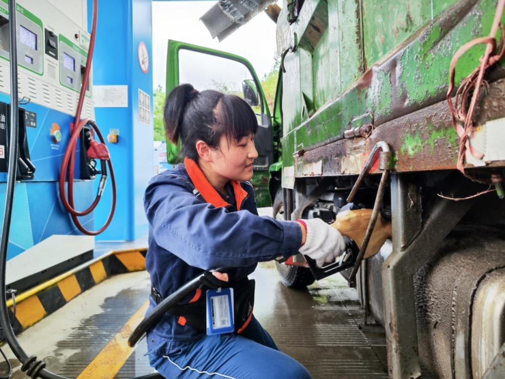 浙石油麗水遂昌東峰站員工為客戶車輛加油。 雷晨輝 攝