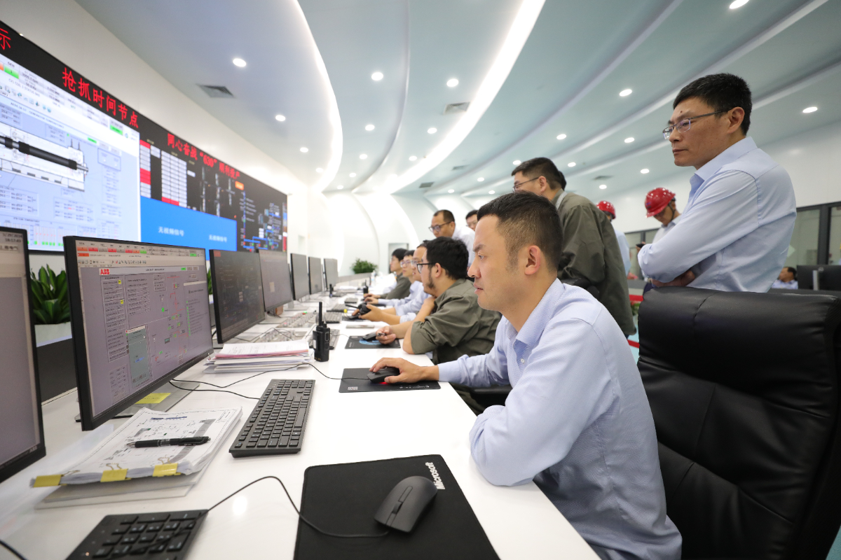 鎮聯電公司燃機異地遷建改造項目集控室中,各專業骨干人員晝夜奮戰、協同發力。 鄭凱 攝