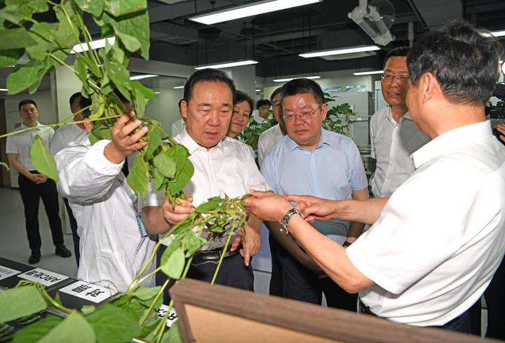 湘湖實驗室是我省唯一一家農業領域的省實驗室,以農業核心種質資源生物制造為主攻方向,著力破解農業領域重大科學與技術問題,突破農業“卡脖子”關鍵核心技術。實驗室主任李培武院士向王浩介紹了近兩年來的研究成果,特別是在生物固氮、小麥赤霉病防治等方面取得的突破。王浩給予充分肯定,要求加強科研成果轉化和運用推廣力度,為全省生態高效農業發展提供強大科技支撐。他指出,實現農業現代化,科技創新很關鍵。要深入實施“科技強農、機械強農”行動,建好用好湘湖實驗室并發揮好省農業科創平臺的關鍵性作用,大力推進農業核心技術創新,持續加強在農業生物技術、綠色智慧高效農業生產技術、農產品質量與生命健康等新興交叉領域科技研發力度,力爭盡快取得一批標志性成果,實現農業科技自立自強。在謝徑安·傳化農創村,王浩走進農業科創中心數字種苗工廠育種大棚,察看農作物長勢,要求牢牢依靠科技和改革雙輪驅動,立足資源稟賦加快發展數字農業、智慧農業、綠色農業,進一步促進農村一二三產業融合發展,更好帶動農民增收致富。