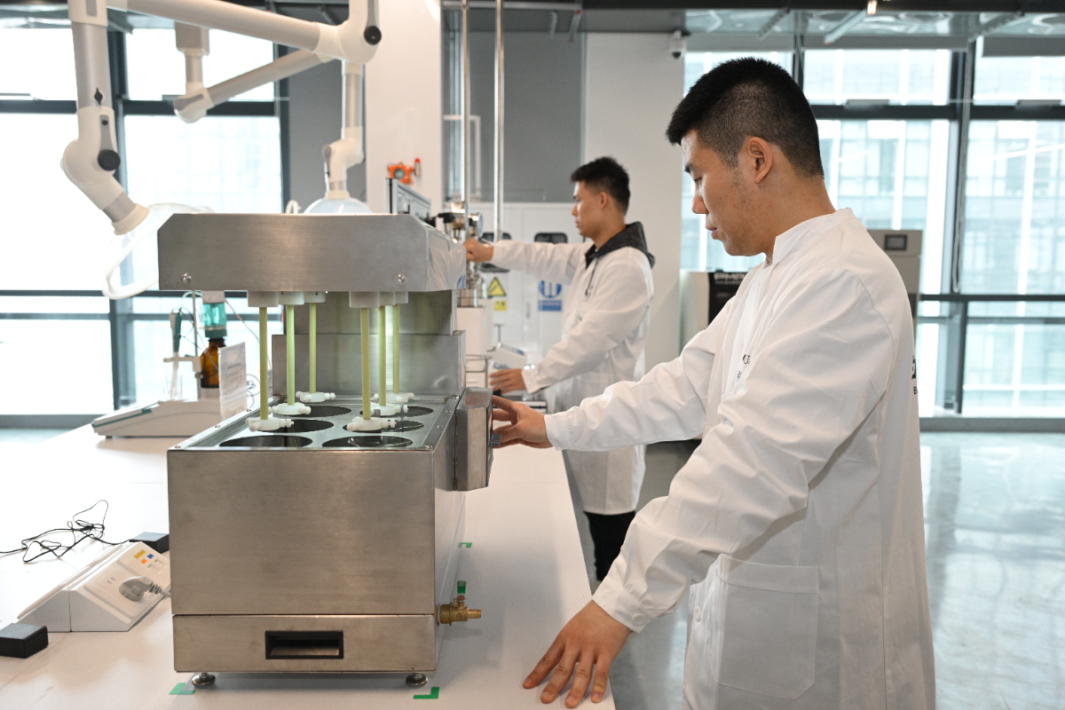 白馬湖實驗室科研人員正在做二氧化碳捕集及利用實驗。