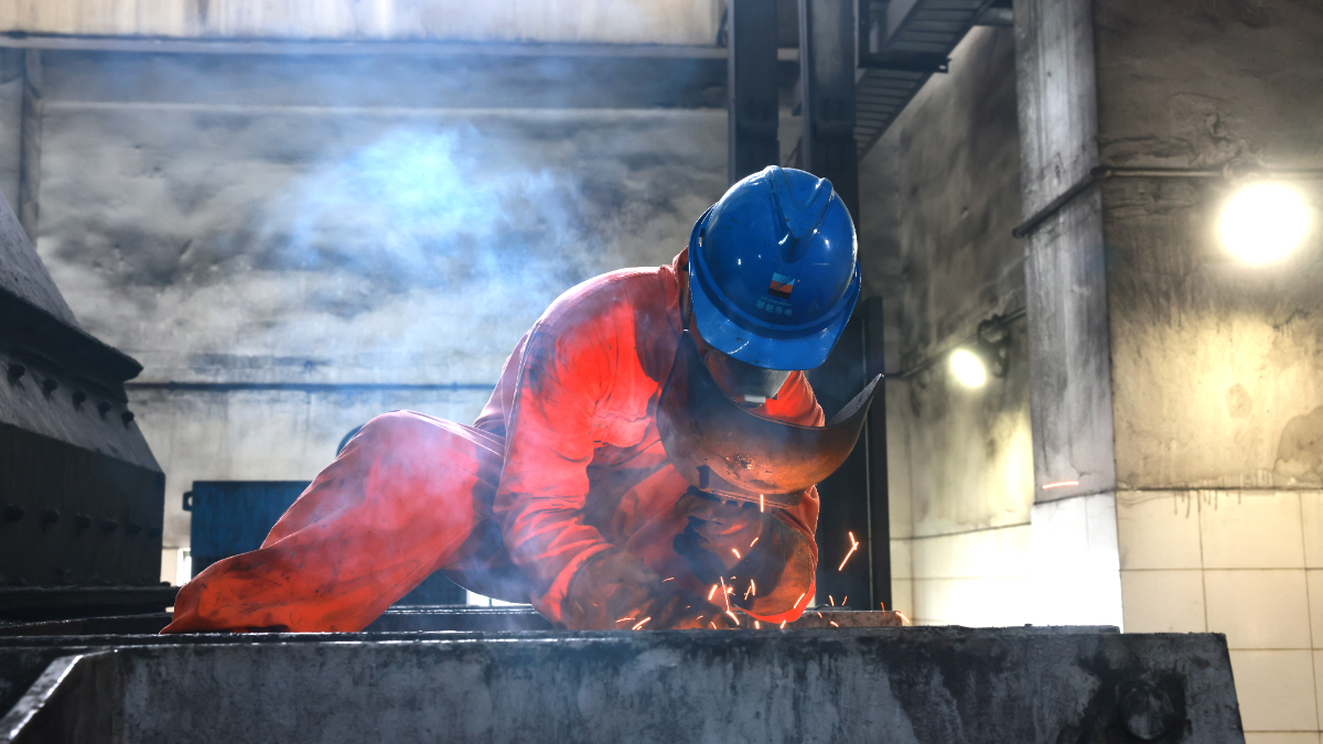 迎峰度夏期間,浙能樂清發電廠燃料部員工正在進行碎煤機檢修工作。