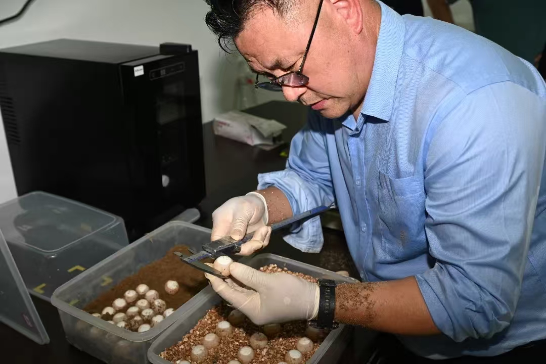 葉承義正在對黿卵進行操作。 青田傳媒集團 提供