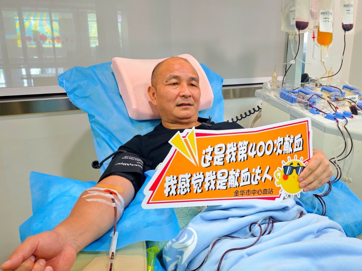 本網(wǎng)訊 7月31日,1965年出生的浙能蘭溪發(fā)電公司職工鮑偉明接到電話后來到金華市中心血站,身體檢查合格后自若地躺在獻血床上,熟練地拿著采血球一握一松,看著身體里的殷紅熱血分離出淡黃色的血小板。今天,鮑師傅又獻出雙份血小板,兩個治療量,為挽救2個病人延緩生命貢獻力量。鮑偉明成為浙江省首位達400次無償獻血者,被稱為“浙江第一獻血達人”。