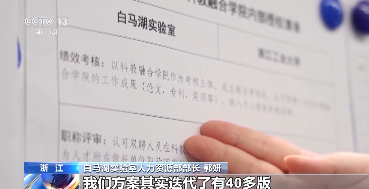 白馬湖實驗室人力資源部部長 郭妍:我們方案其實迭代了有40多版,最終我們是在科研人員比較關心的績效考核、職稱評審、學生培養、項目立項等方面授權清單,都給到了最大的體制機制的保障和政策的松綁。