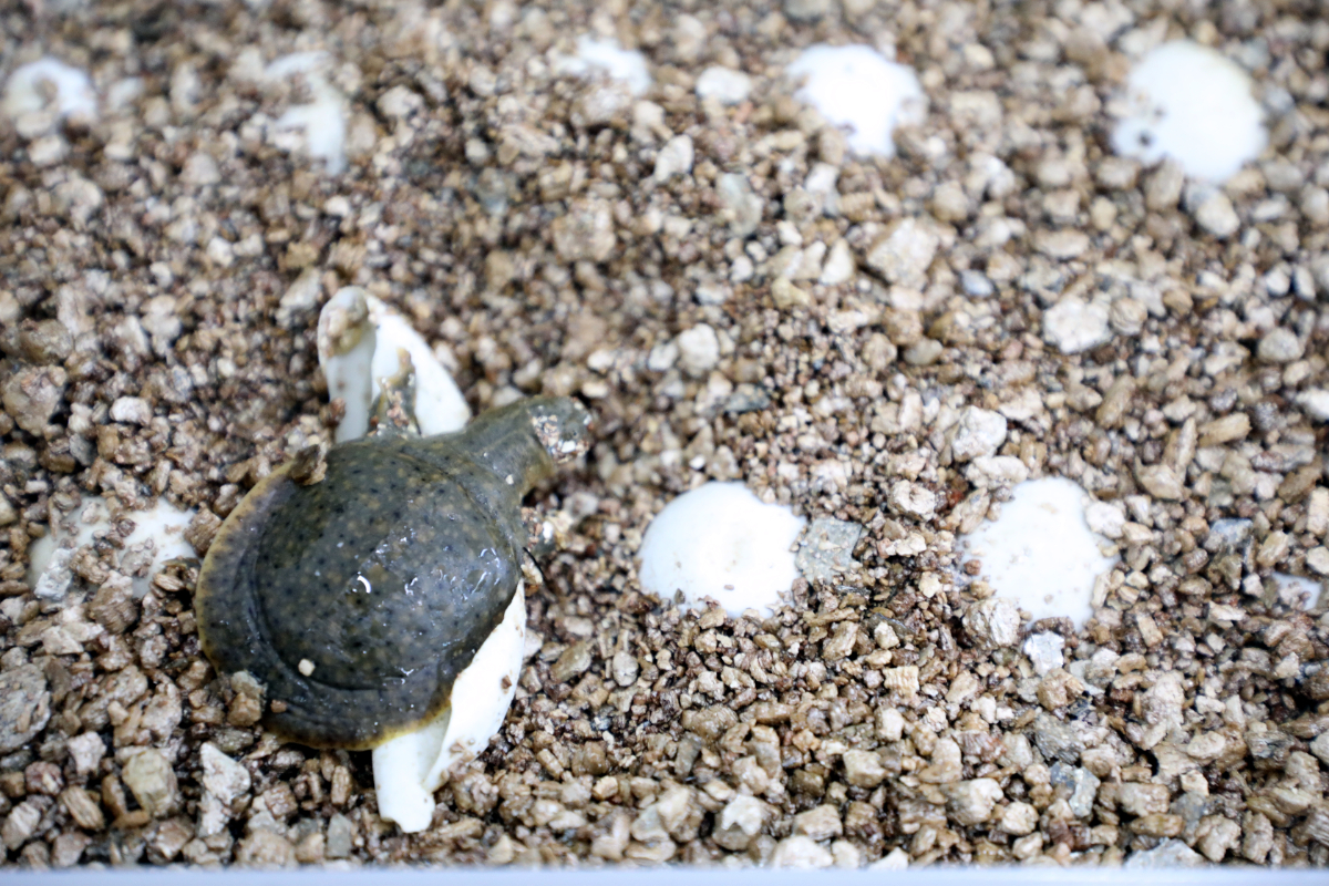 8月25日下午起,灘坑水電站增殖放流站今年甌江黿寶寶依次破殼出生。 壽憶夢 攝