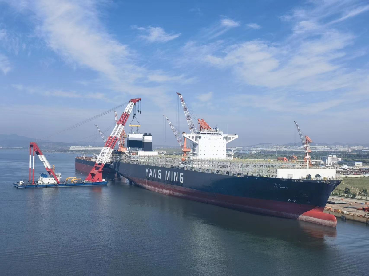 加裝了浙能邁領公司混合式脫硫系統的試航船舶。 浙能邁領 提供