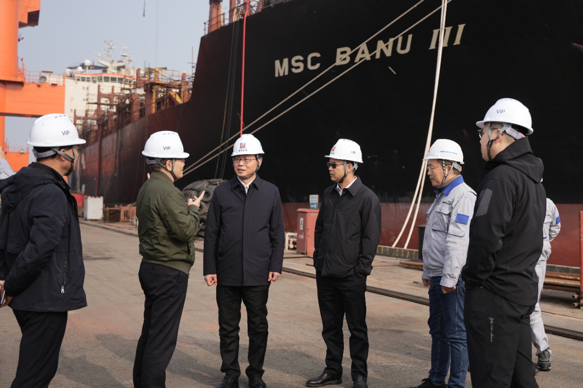 集團(tuán)黨委書(shū)記、董事長(zhǎng)劉盛輝深入浙能邁領(lǐng)船舶綠色改造維修基地等現(xiàn)場(chǎng)調(diào)研。 徐晶晶 攝