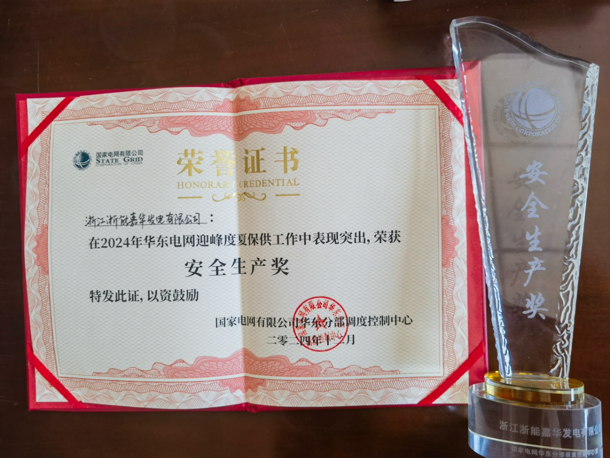 嘉華發電公司榮獲華東電網2024年迎峰度夏保供安全生產獎