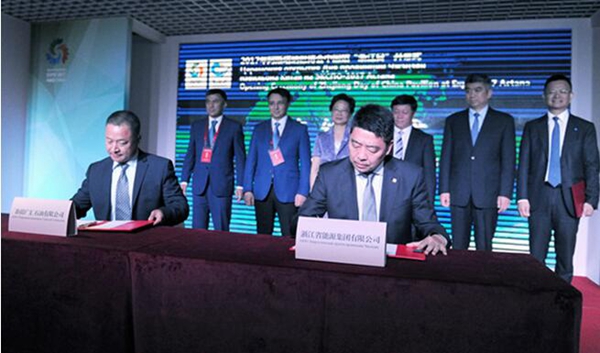 當(dāng)?shù)貢r(shí)間6月23日上午11時(shí),2017年阿斯塔納世博會(huì)中國(guó)館“浙江日”開(kāi)幕式在中國(guó)館多功能廳拉開(kāi)帷幕。浙江省副省長(zhǎng)梁黎明、中國(guó)貿(mào)促會(huì)副會(huì)長(zhǎng)陳洲、中國(guó)駐哈薩克斯坦大使張漢暉、哈薩克斯坦能源部副部長(zhǎng)馬克沃夫﹒馬拉杜勒等出席開(kāi)幕式并致辭。浙能集團(tuán)總經(jīng)理柯吉欣受邀出席開(kāi)幕式,并在相關(guān)領(lǐng)導(dǎo)和嘉賓見(jiàn)證下,與新疆廣匯石油公司董事長(zhǎng)況軍就哈薩克斯坦有關(guān)能源項(xiàng)目簽署戰(zhàn)略合作諒解備忘錄。