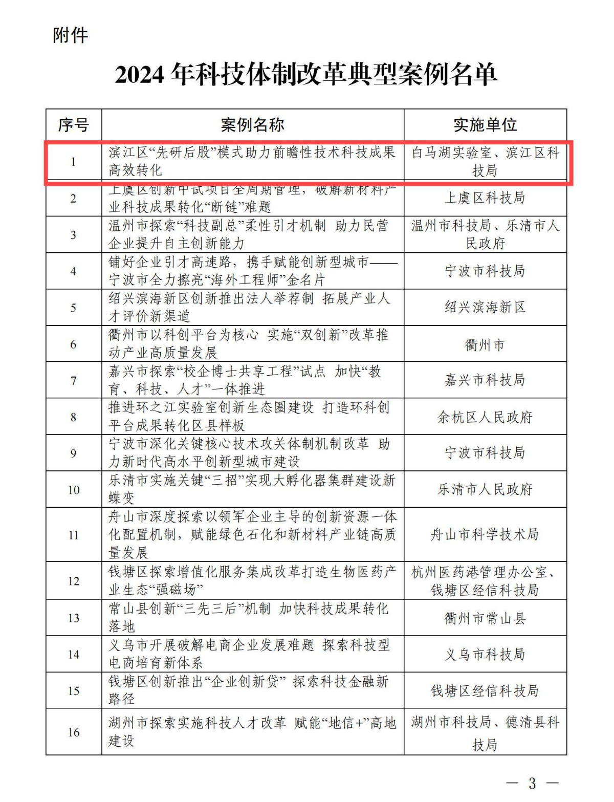 創新浙能 | 白馬湖實驗室“先研后股”模式入選浙江省2024年科技體制改革典型案例