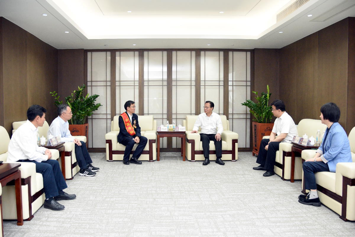 4月29日上午,浙能集團黨委書記、董事長劉盛輝會見剛從北京載譽榮歸的全國勞動模范、浙能樂電維護部電儀黨支部書記、副主任徐仙華,勉勵他珍惜榮譽、再接再厲,充分發揮模范帶頭作用,為集團高質量發展再立新功。