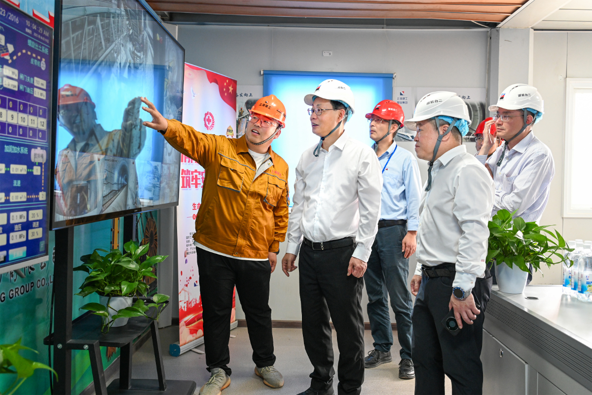 浙能集團黨委書記、董事長劉盛輝赴浙能臺二電實地查看二期建設情況,并了解排水盾構情況。 俞琬 攝