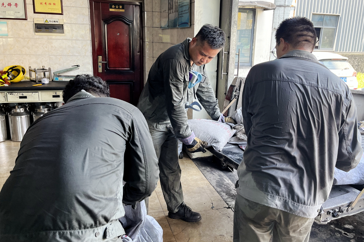 人工采樣后光是煤樣袋也要來回搬運好幾輪。 葉其彬 提供