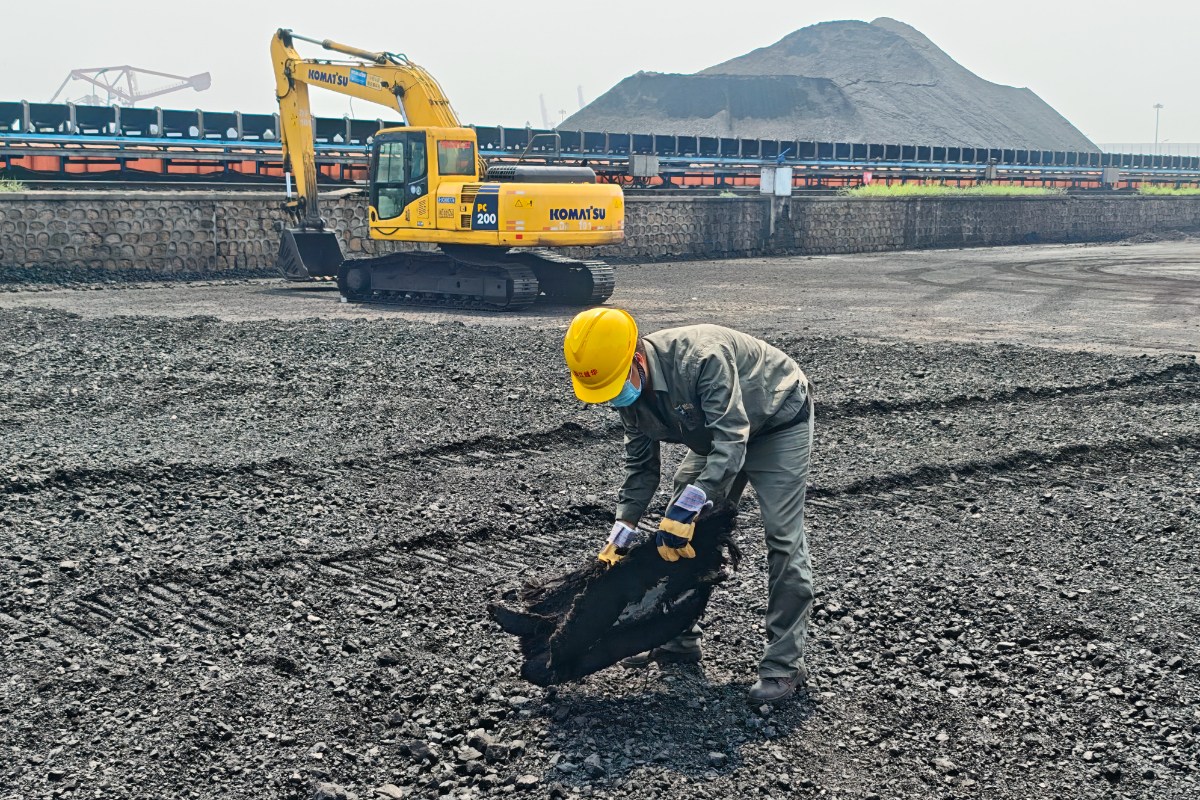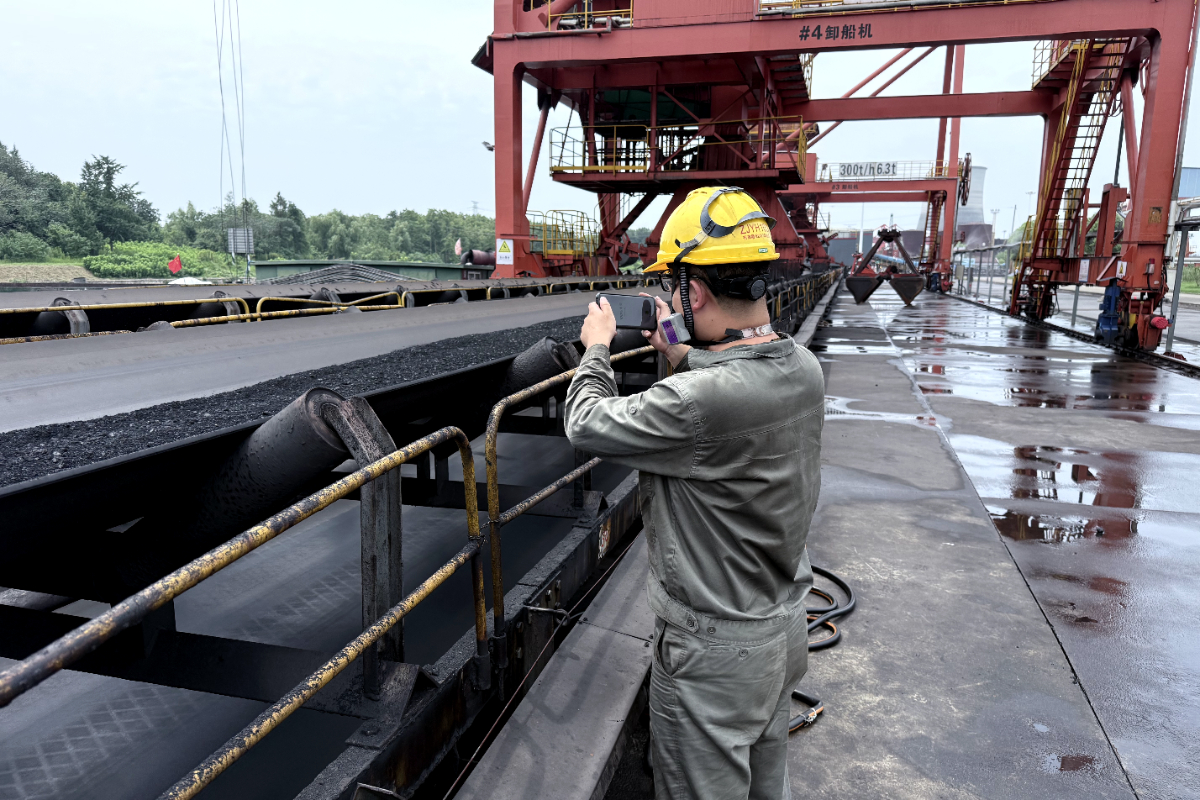 浙江越華長電駐廠員工皮帶巡檢查看煤質(zhì)情況。 方祺森 攝