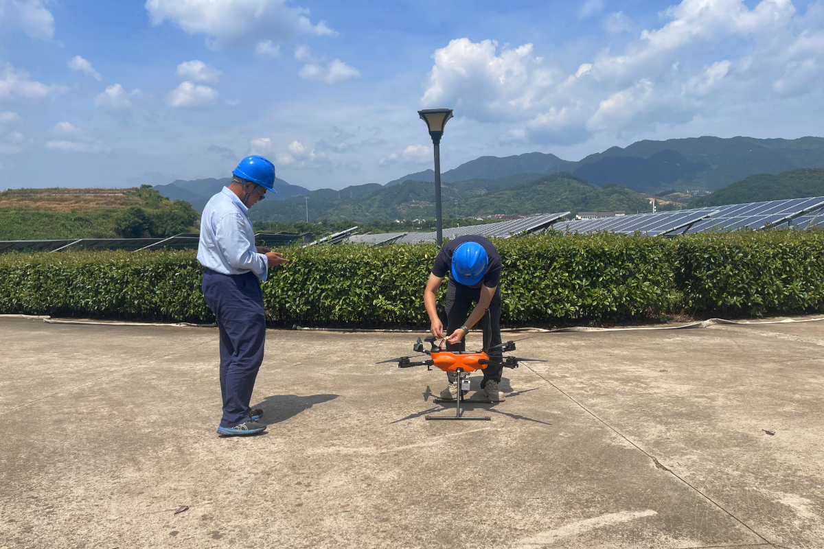 浙江新能旗下衢州力諾光伏電站開展無人機(jī)熱斑巡檢。 朱云宇 攝