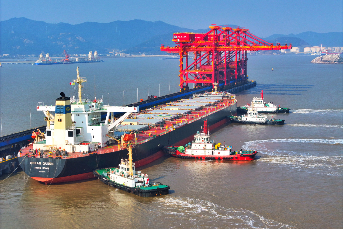 “海洋皇后”輪停靠在浙能港口卸船碼頭#1泊位。 陳宇 攝