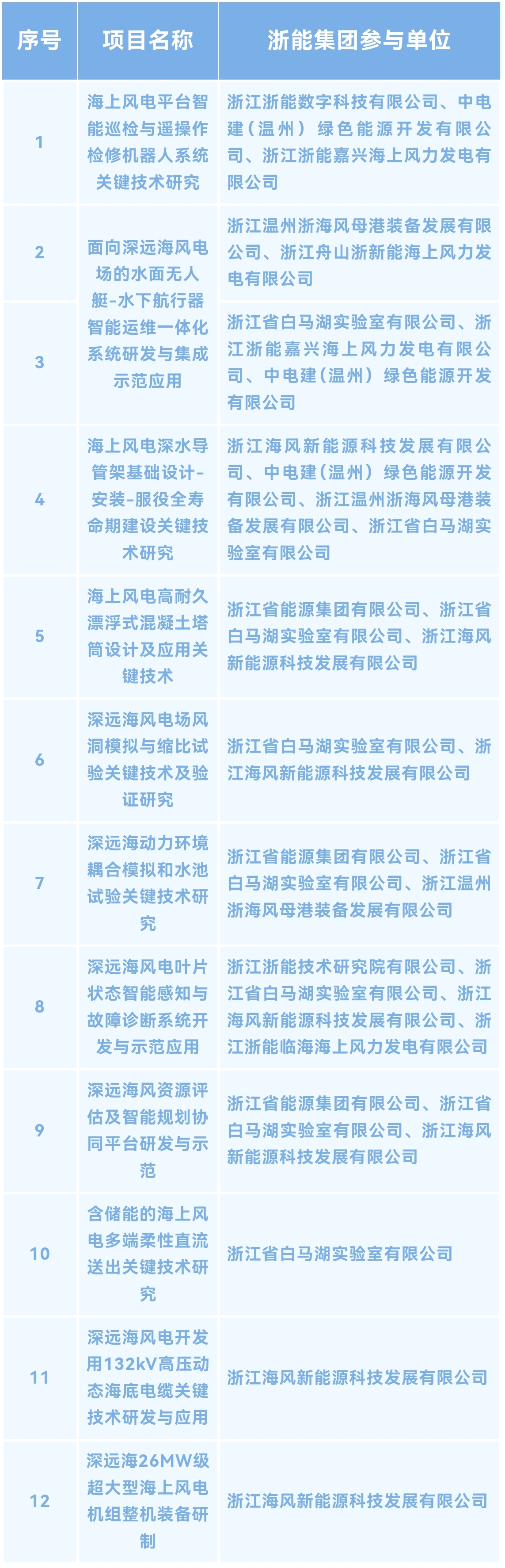 本網訊 近日,省國資委、省科技廳發布了2026年度“尖兵領雁+X”科技計劃深遠海風電領域項目。浙能集團獲批12項,其中牽頭5項,參與7項,涉及海風科技公司、白馬湖實驗室、技術研究院、嘉海風電、浙能數科等集團所屬9家單位。