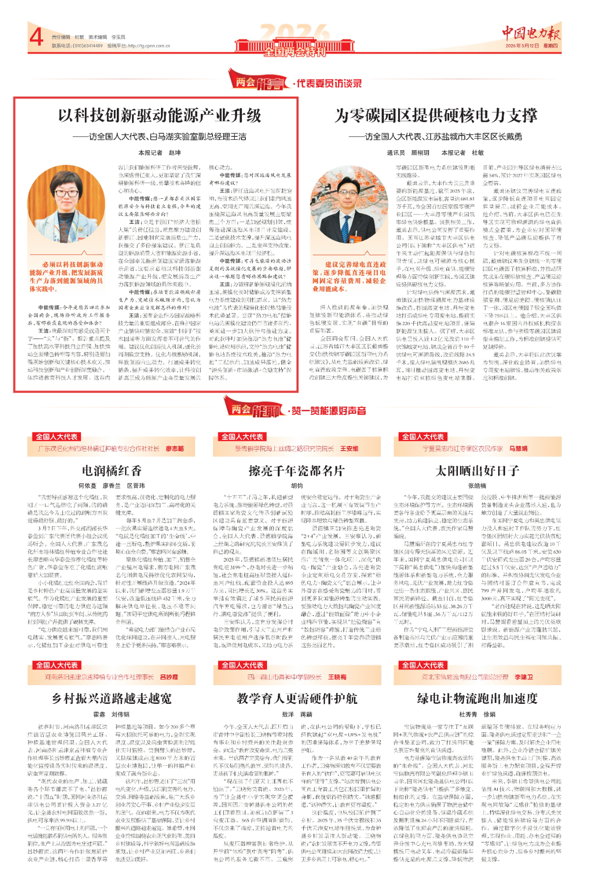 3月12日,《中國電力報(bào)》報(bào)道《以科技創(chuàng)新驅(qū)動能源產(chǎn)業(yè)升級——訪全國人大代表、白馬湖實(shí)驗(yàn)室副總經(jīng)理王潔》。 《中國電力報(bào)》 圖