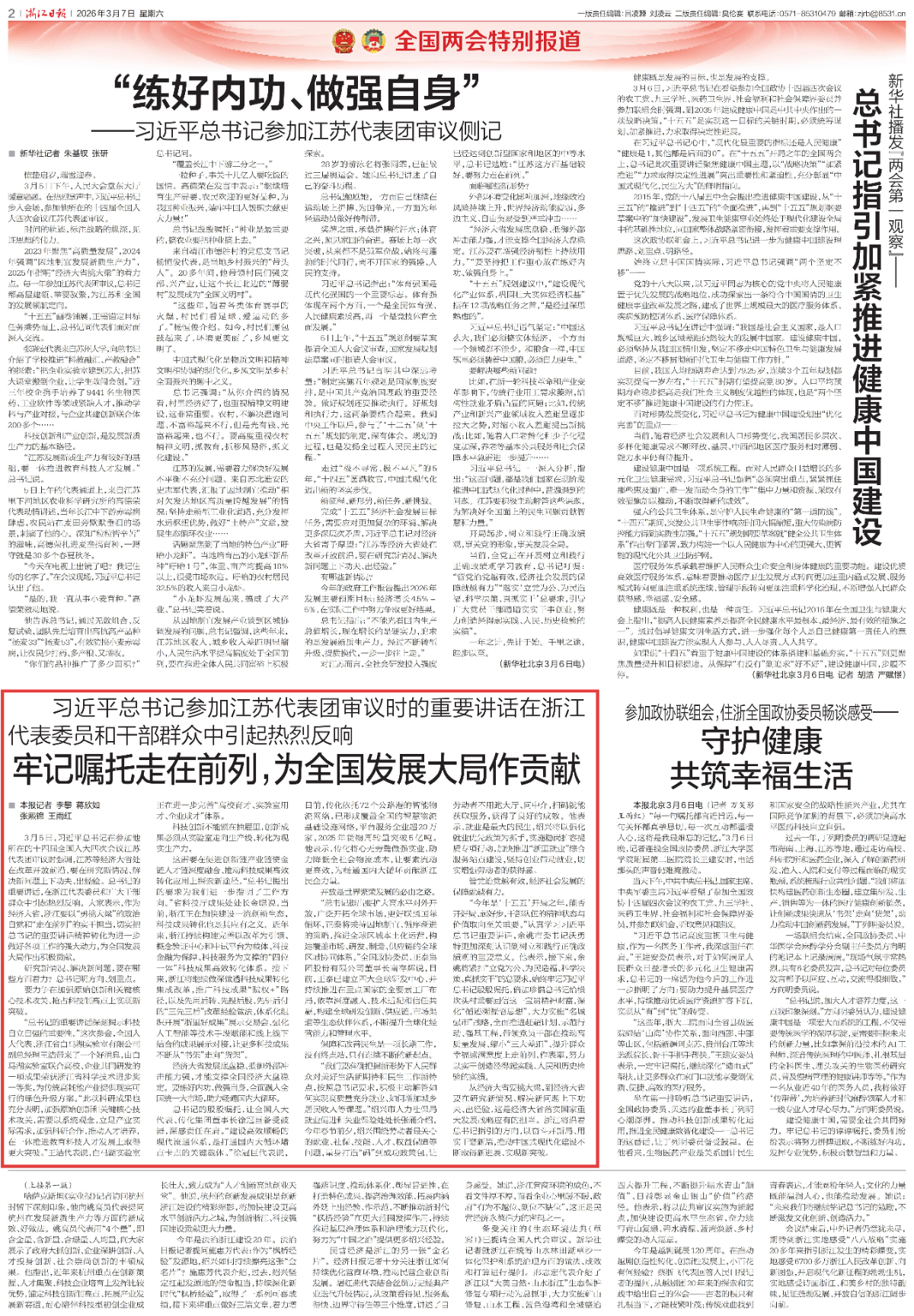 3月7日,《浙江日報(bào)》及潮新聞報(bào)道《習(xí)近平總書記參加江蘇代表團(tuán)審議時的重要講話在浙江代表委員和干部群眾中引起熱烈反響——牢記囑托走在前列,為全國發(fā)展大局作貢獻(xiàn)》,采訪王潔同志。 《浙江日報(bào)》、潮新聞 圖