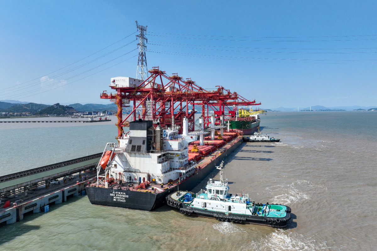 浙能集團首個海外煤礦項目首船煤炭靠泊樂電煤碼頭。 張立忠 攝
