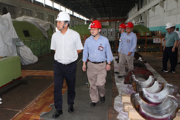 柯吉欣總經理一行在鎮電5號機組大修現場檢查安全生產。 賀欣 攝