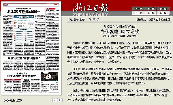8月30日,浙江日報報道浙能集團率先在全省國企中實現“項目落地、資金到位、投產見效”。浙江日報 圖