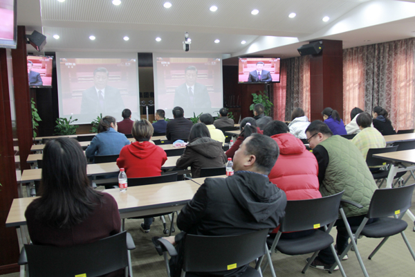 省水利水電集團本部在崗職工集中收看“慶祝改革開放40周年大會”。 賈延玨 攝