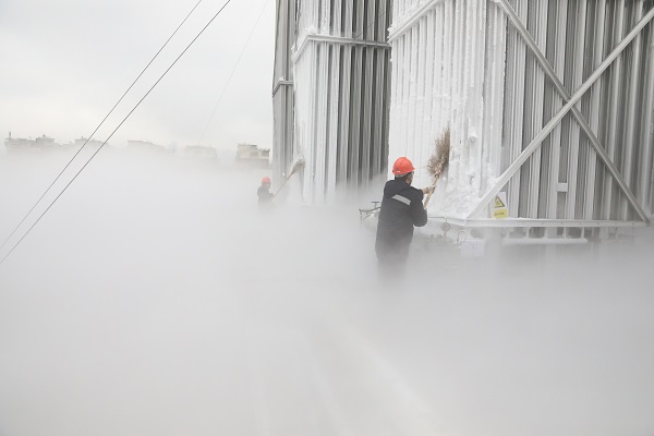 浙能城燃義烏公司保供站場站運行工正在對設備進行除雪。 任惠玲 攝