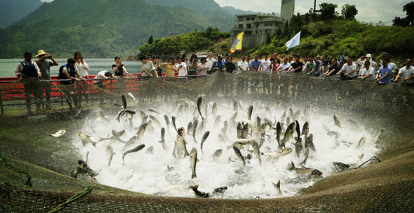 6月6日,“全國放魚日”,浙能集團旗下北海水力發(fā)電公司將自行繁育的2萬尾香魚苗、200尾大鯢放生于一類水質的千峽湖。同時,當?shù)卣矊?0萬尾鰱魚、鳙魚等魚苗放生于千峽湖庫區(qū)。