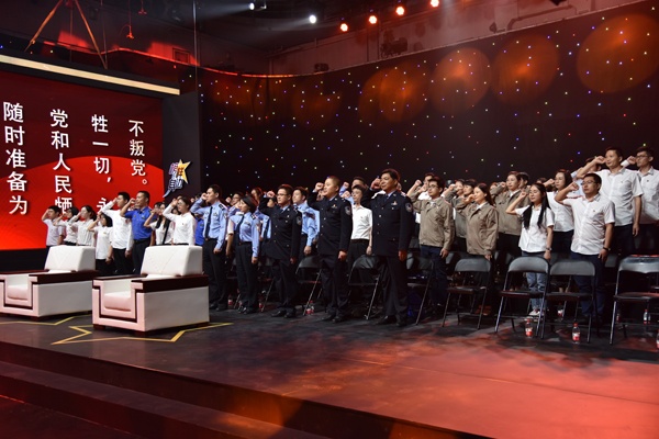 浙能集團本部及天地環(huán)保公司部分黨員參加節(jié)目錄制,接受現(xiàn)場教育,并重溫入黨誓詞。