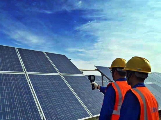 浙能下屬省新能源投資集團公司西北光伏電站生產人員國慶期間加強設備巡檢,安全保電獻禮祖國70華誕。李彥偉 攝