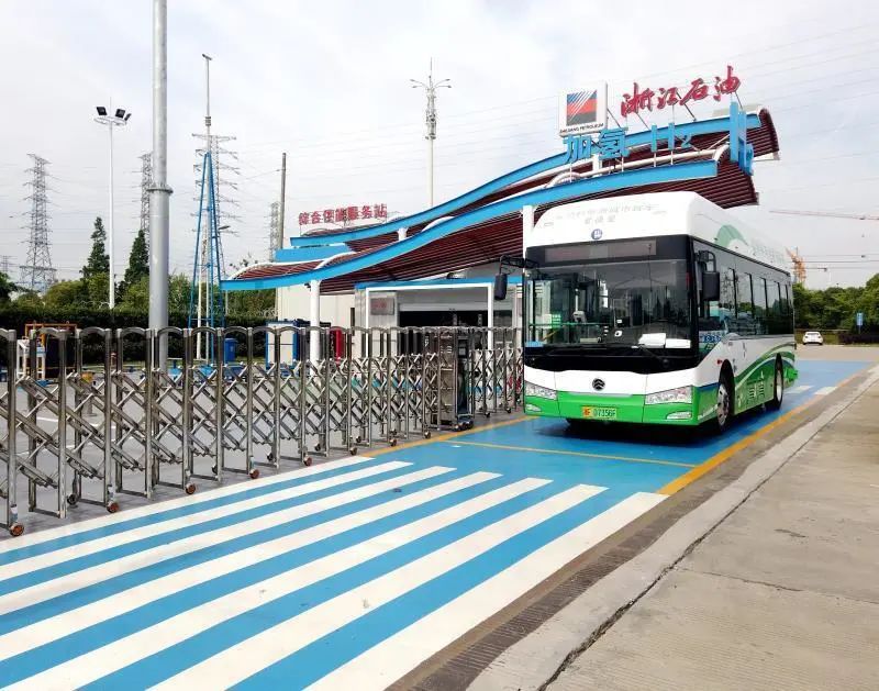 浙石油嘉善客運中心東綜合供能服務站為氫能源公交車提供加氫服務。