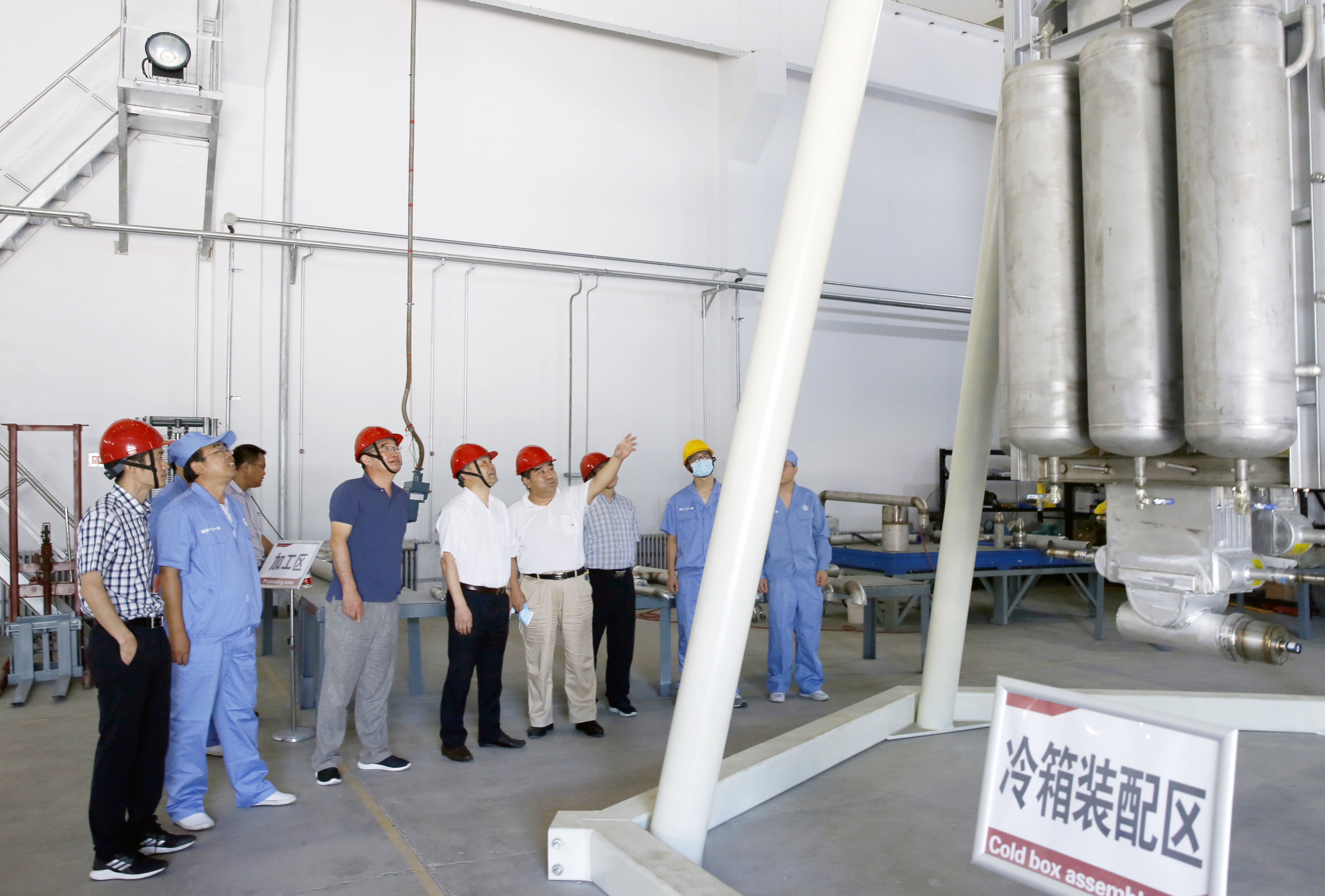 圖為浙能集團組織專家到101所檢查氫液化系統冷箱集成進展情況。陳夏 攝