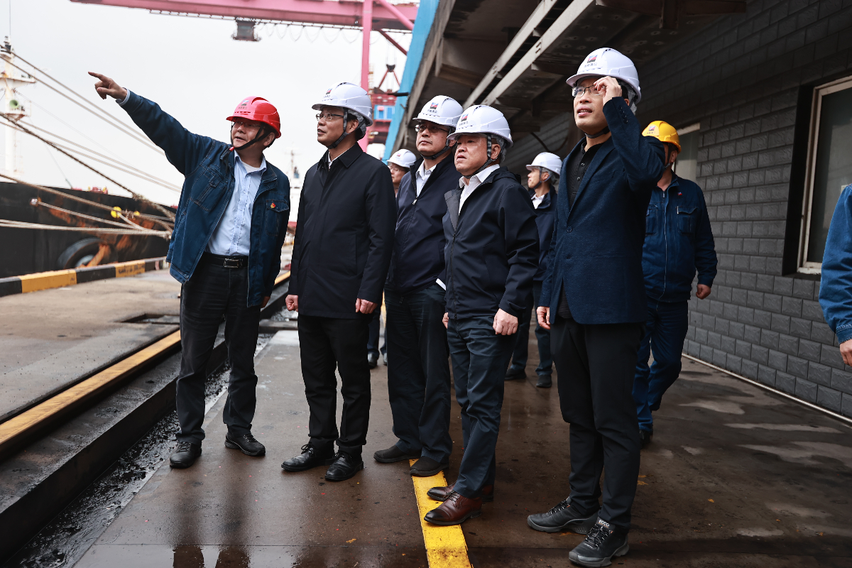 劉盛輝一行正在調(diào)研浙能港口卸船碼頭。 陳宇 攝