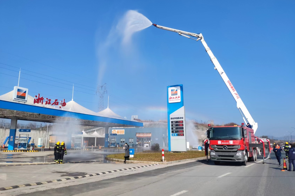 浙石油金華陽光大道綜合供能站與義烏蘇溪消防大隊聯合開展消防演練。 林初然 提供